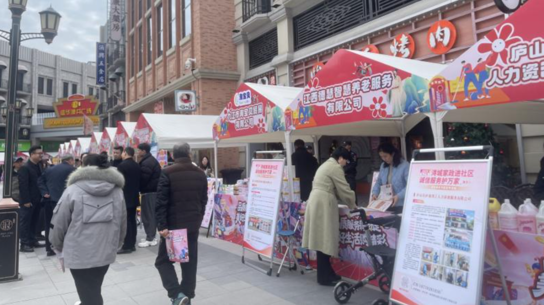 启动仪式结束后,与会嘉宾共同观看了现场设置的服务消费市集。活动现场,近70个特色展位涵盖“浔潮焕新”数字时尚——金融服务区、“浔潮焕新”数字时尚——直播电商区、“家政服务招聘季”区、“浔暖桑榆”养老托育区、“浔动活力”体育健康区、“谷子市集”现场展示区、“浔风雅韵”文旅休闲区、“浔味千年”餐饮美食区等主题板块,各展区人头攒动,热闹非凡。
